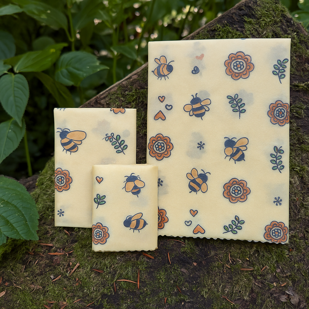 Stell dir vor, du wickelst dein Pausenbrot ein – nicht in Plastik, sondern in Natur. Diese Bienenwachstücher bestehen aus Baumwolle und Bio Bienenwachs. Sie fühlen sich lebendig an, duften dezent nach Wachs und werden mit jeder Nutzung ein Stück vertrauter.